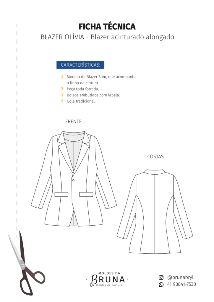 Costure um Blazer bem alinhado, todo forrado com comprimento que cobre o bum bum. Uma peça muito elegante que vai do look casual ao mais formal.