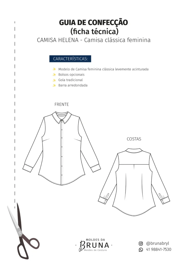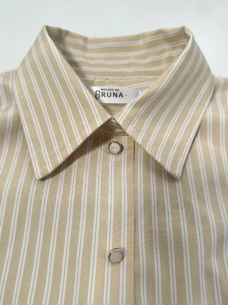 Costure uma Camisa feminina slim, um modelo clássico levemente acinturado e com barra arredondada que cobre o bum bum.