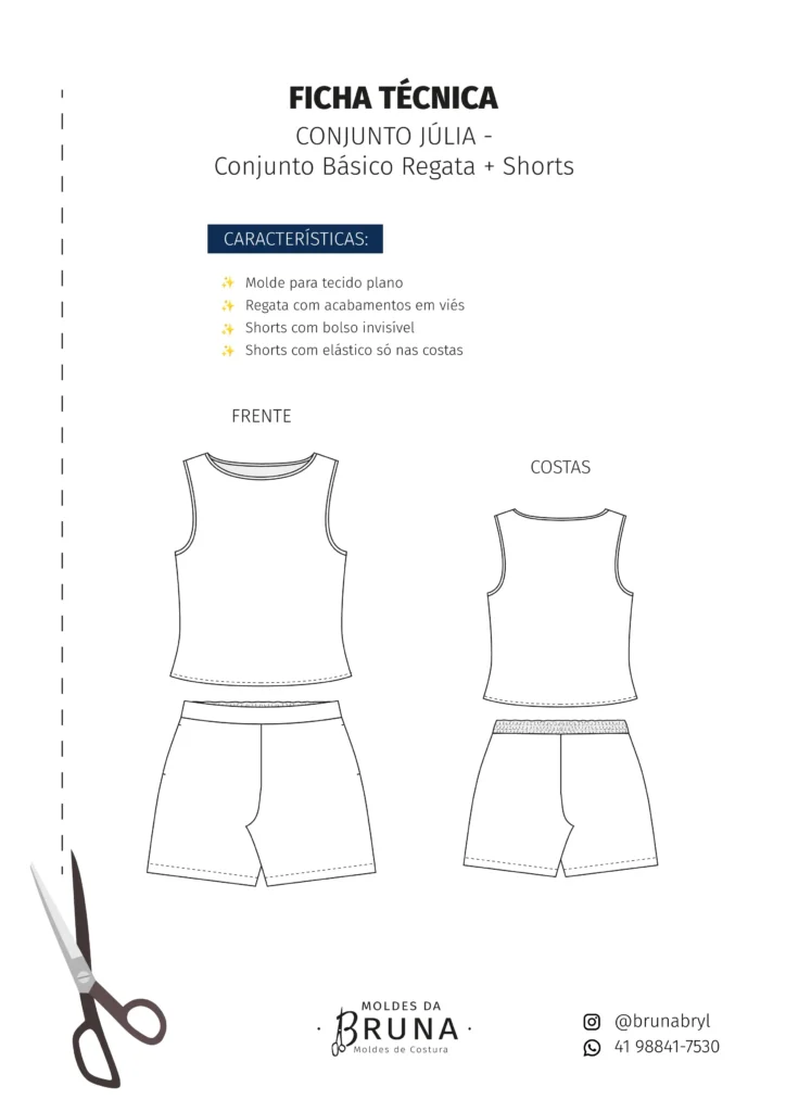Costure um Conjunto de Regata + Shorts, aquele conjunto básico e confortável pra todo dia! Regata com acabamentos em viés, Shorts com elástico só nas costas e bolso invisível ❤️